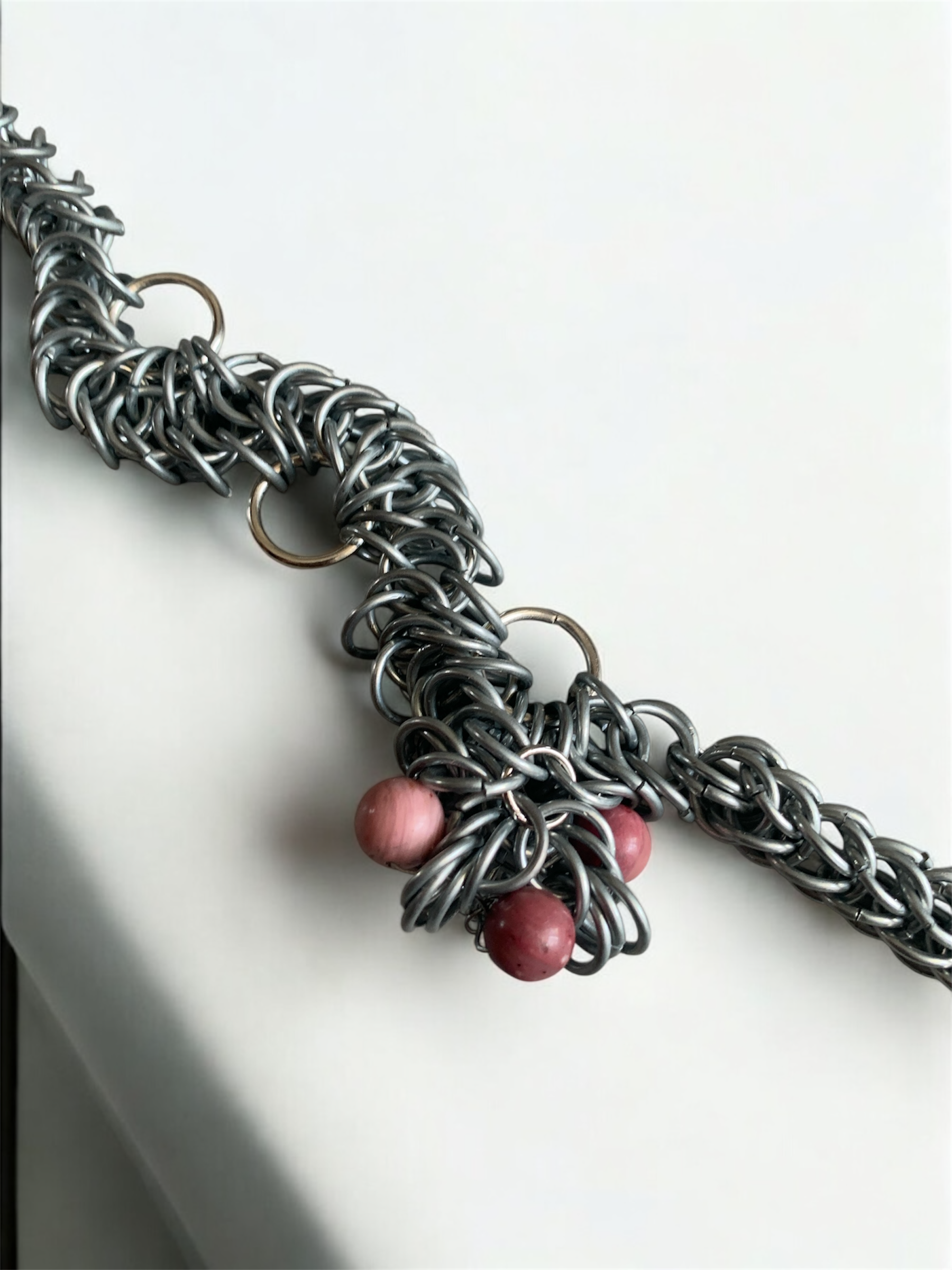 Chaque maillon est travaillé à la pince, poli, puis monté à la main avec patience.